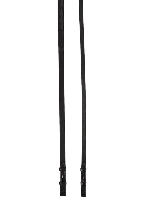 Anatomisch en comfortabel stang en trens hoofdstel gemaakt van een mooie kwaliteit Engels leder. Het hoofdstel heeft een 45 mm brede en zacht gevoerde anatomische aansnoerneusriem om de druk op de gevoelige delen te verlichten. Het anatomische kopstuk is extra breed en zacht gevoerd voor een optimale drukverdeling. De voering van het kopstuk is in het midden onderbroken, zodat het kopstuk bij het gedeelte van de manen geen extra druk geeft. De voorgevormde frontriem is ingelegd met heldere, glinsterende kristalletjes. De neusriem is vervaardigd van lakleder en zacht gevoerd in de kleur black. De bakstukken zijn voorzien van haaksluitingen en de keelriem is verstelbaar aan beide kanten. Wordt geleverd met stang- en trens teugels met haaksluitingen. De stang teugel is vervaardigd van leder en de trens teugel is vervaardigd van anti-slip. Verkrijgbaar in de kleur black.