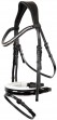 Luxe hoofdstel gemaakt van een mooie kwaliteit leder. Het hoofdstel heeft een 50 mm brede en zacht gevoerde anatomische aansnoerneusriem afgewerkt met lakleder. Het kopstuk is extra breed en zacht gevoerd voor een optimale drukverdeling en vrijheid bij de oren. De voorgevormde frontriem is voorzien van heldere kristalletjes. De keelriem is aan beide kanten verstelbaar. Voorzien van anthracite-kleurige fournituren en zilverkleurige haaksluitingen. Wordt geleverd inclusief een anti-slip teugel. Verkrijgbaar in de kleur black met white onderlegde neusriem.