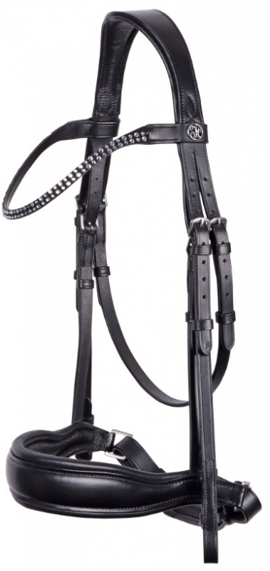 Trenshoofdstel gemaakt van een mooie kwaliteit leder. De Liberty heeft een 50 mm brede en zacht gevoerde anatomische aansnoerneusriem, maar zónder een sperriem. Het kopstuk is anatomisch en zacht gevoerd voor een optimale drukverdeling en vrijheid bij de oren. De frontriem heeft zilverkleurige kristalletjes en de bakstukken hebben zilverkleurige haaksluitingen. De teugel is vervaardigd van webband met roestvrije haaksluitingen en stops. Verkrijgbaar in de kleur black.