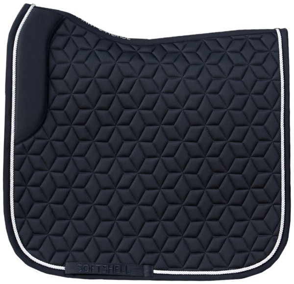 Trendy zadeldek van Harry's Horse met een silver-kleurige koordbies. Het zadeldek heeft een buitenstof van softshell en aan de binnenkant is het zadeldek voorzien van een sneldrogende en ademende voering van mesh. Aan de voorkant bevindt zich een subtiele, licht verhoogde inzet met een zachte vulling van foam voor extra stabiliteit en ondersteuning van het zadel. Aan de onderkant bevindt zich een singellus. Verder is het zadeldek voorzien van een Harry's Horse-logo op de bovenkant. Machinewasbaar. Verkrijgbaar in de kleur navy.