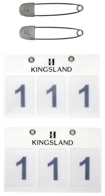 Eenvoudig te bevestigen wedstrijdnummers in 2-pack. De houder is voorzien van twee ringgaten voor de meegeleverde veiligheidsspeldjes. Op de wedstrijdnummers kunnen drie nummers worden geplaatst. Voorzien van een Kingsland-logo. De afmetingen zijn 12 x 8 cm. Verkrijgbaar in de kleur white/white met black cijfers. (1000409805)