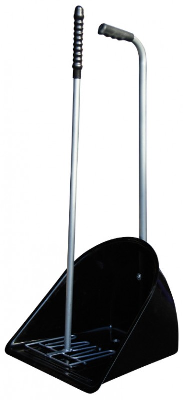 Handy tool for removing manure from the stable or arena. Made of a metal fork and a plastic dustpan with metal stem. Available in the colour black.