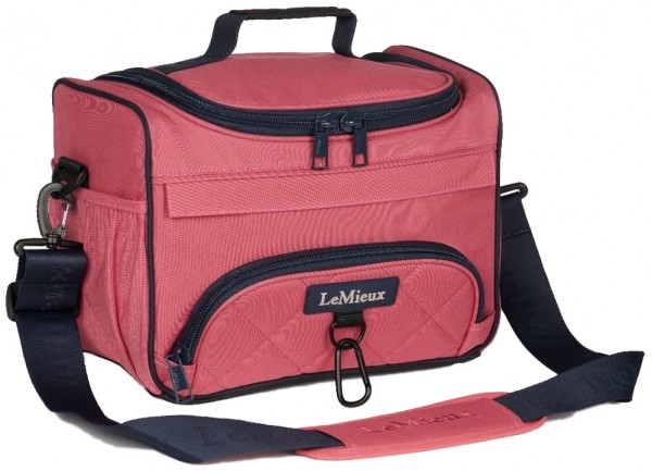 Multifunctionele poetstas met vele opbergvakjes met- en zonder rits. De poetstas is uitermate geschikt voor op concours om bijvoorbeeld antiklit spray, bandages, eten en drinken, wondverzorging etc. in mee te nemen. De afneembare en verstelbare schouderband is voorzien van een zacht kussentje voor meer comfort tijdens het dragen. De bovenkant kan worden afgesloten met een stevige tweeweg-rits en heeft een handvat. De tas is voorzien van een LeMieux-logo's aan de voorkant. Het formaat van de poetstas is 24 cm hoog, 33 cm lang en 20 cm breed. Verkrijgbaar in de kleur cranberry.
