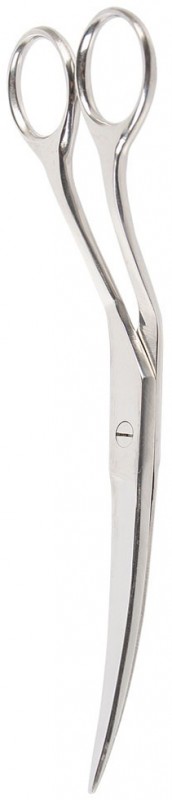 Dubbel gebogen schaar voor het knippen en bijwerken van staart, manen, oren en benen. Door de bocht in de schaar kunt u het haar in natuurlijk model toiletteren. Verkrijgbaar in roestvrijstaal.